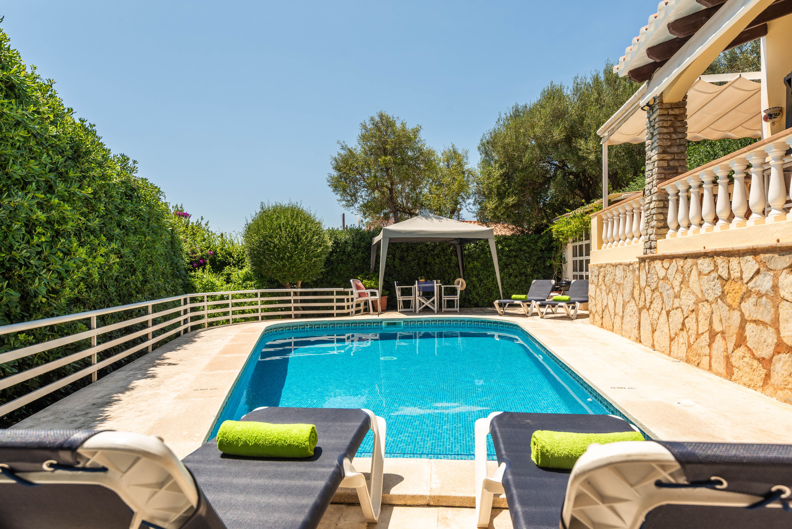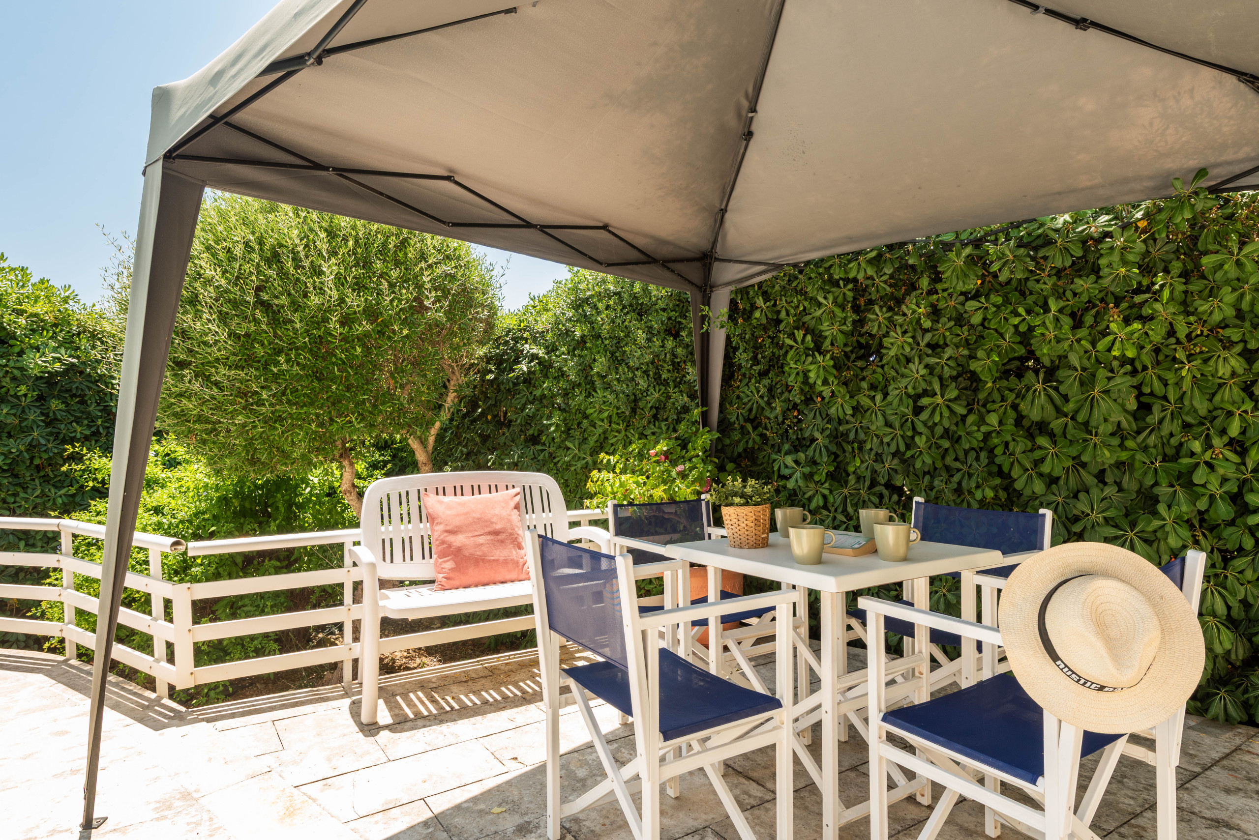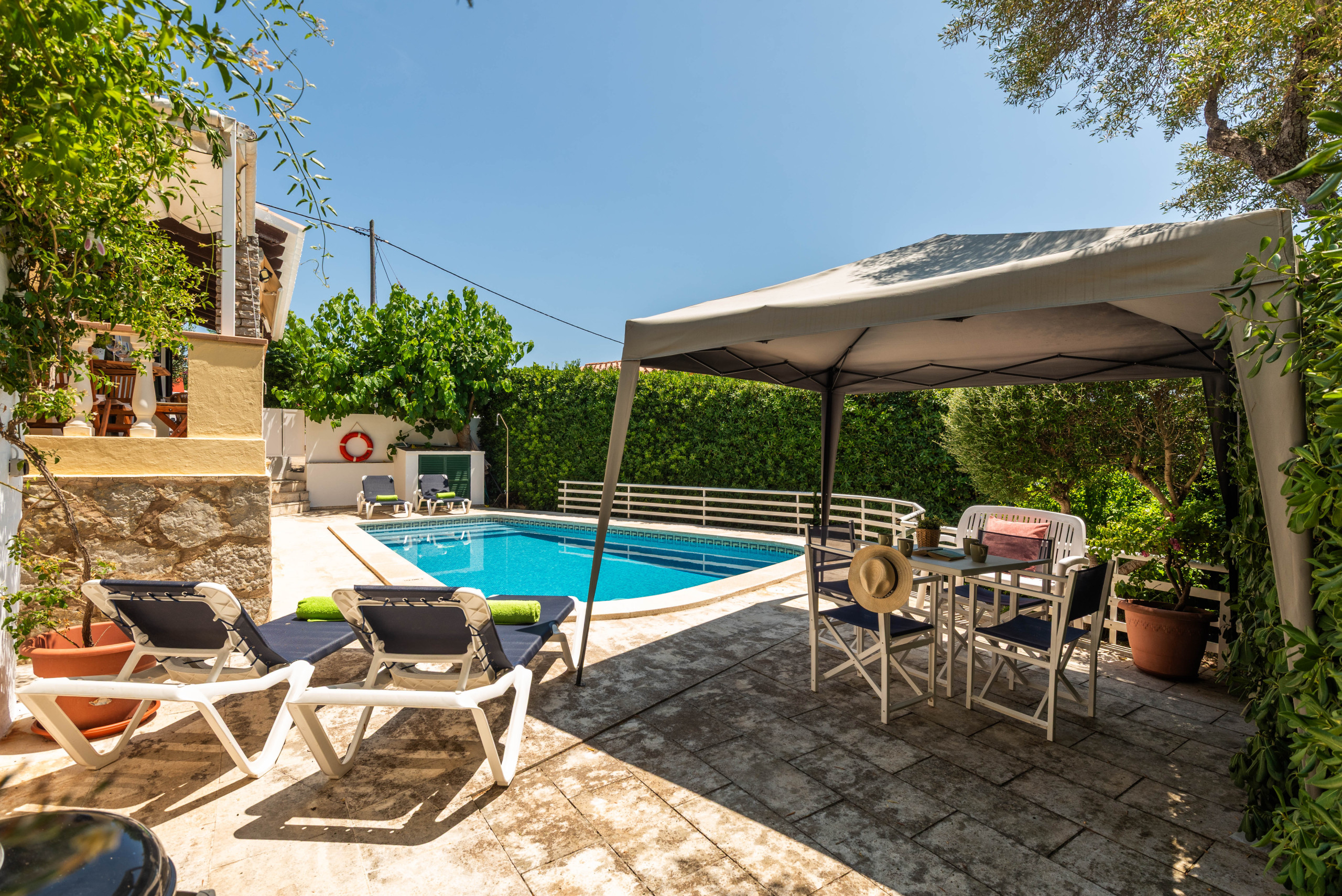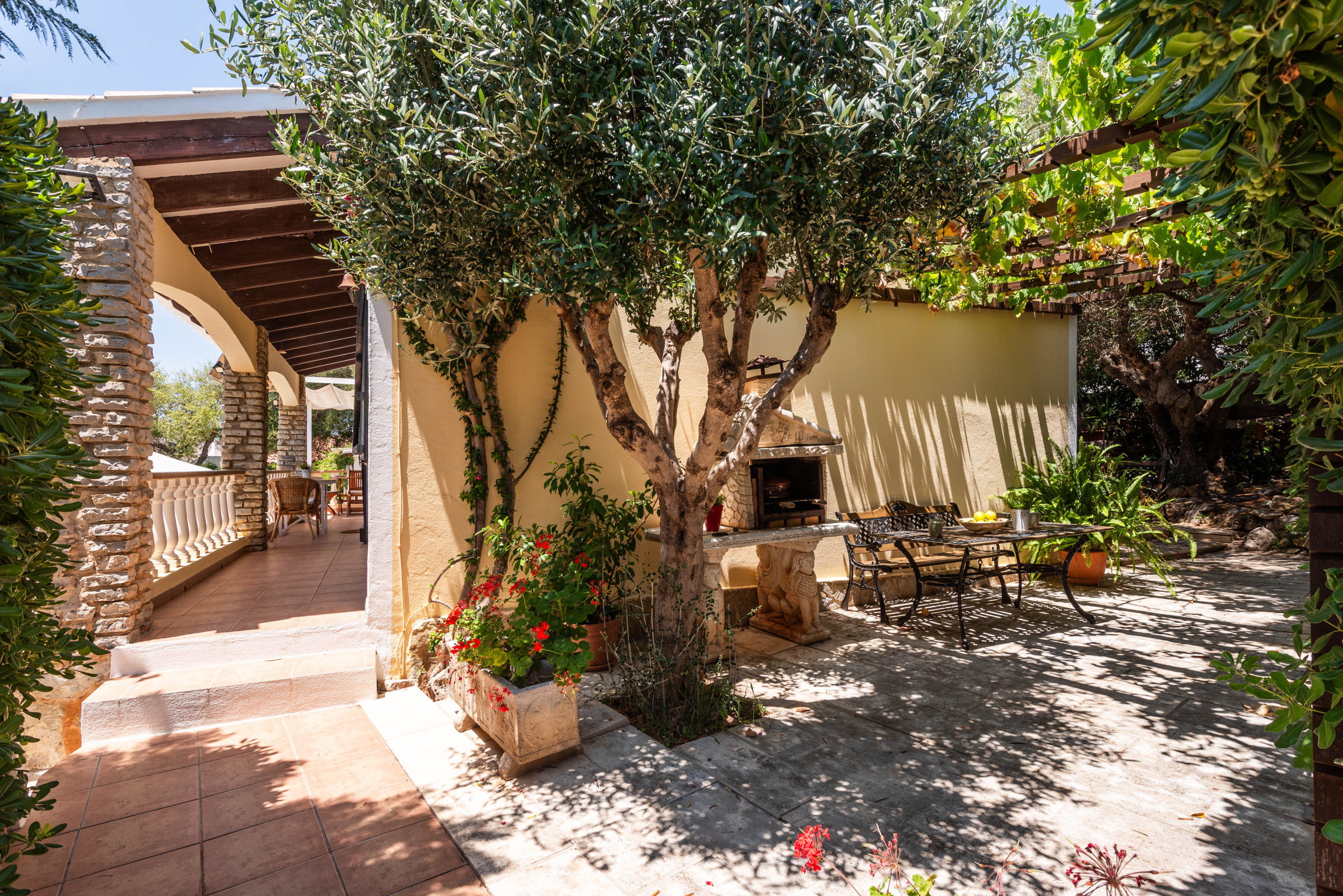 La villa tiene una piscina privada y una terraza circundante que ofrece mucho espacio para relajarse y disfrutar del sol. Además tiene una impresionante barbacoa de obra y una pérgola con mesa y sillas para disfrutar de un almuerzo o cena al aire libre.