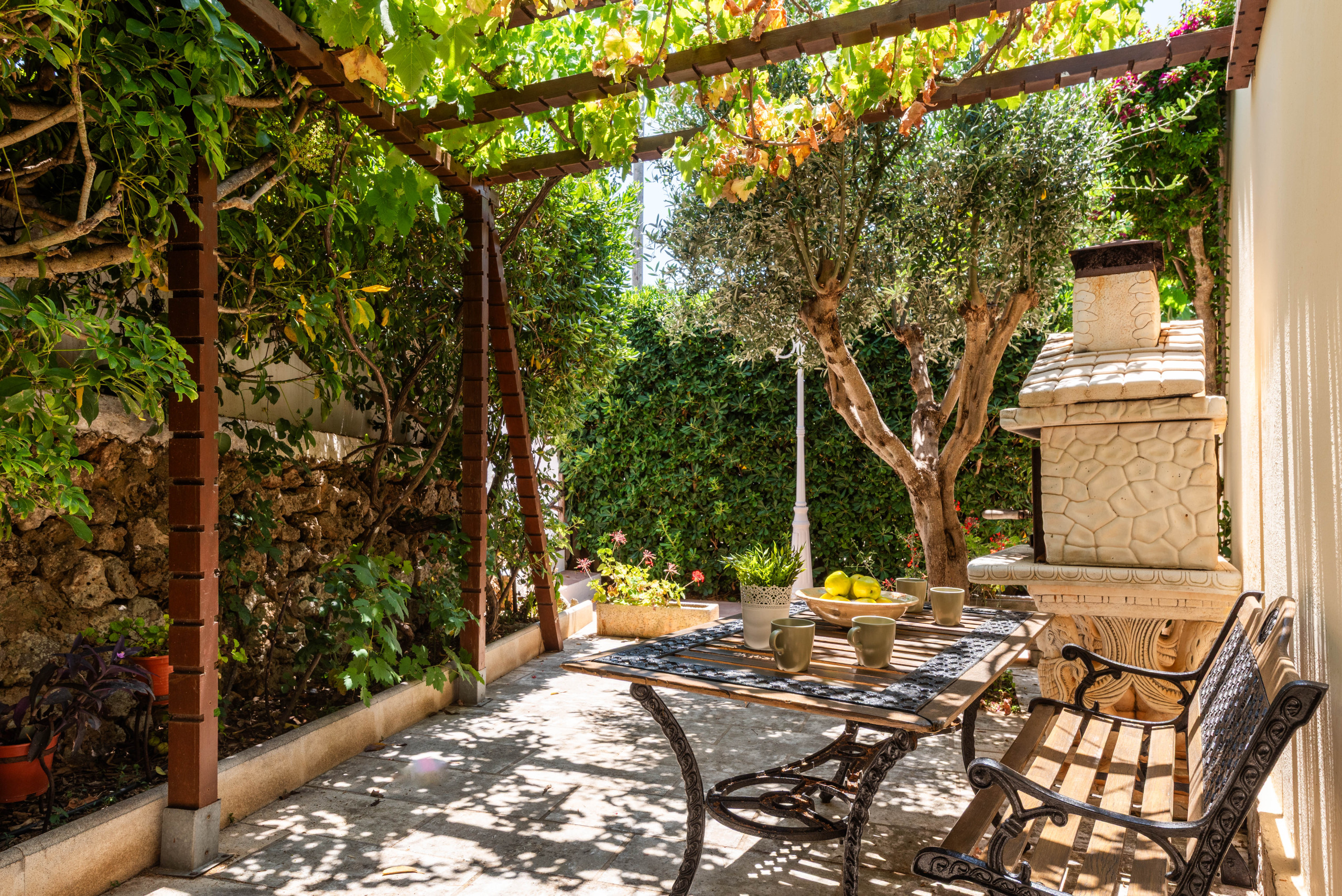 Villa Mari es la casa ideal para las personas que quieran disfrutar de verdad de su pequeño reino vacacional. Su exterior ofrece tantos rincones y terrazas, que puedes elegir uno diferente para cada parte del día. ¿Al lado de la piscina tomando el sol, más arriba en la terraza disfrutando de la abundante vegetación que rodea la casa, en la otra terraza cubierta, al lado de la barbacoa? Cada miembro de la familia tendrá el suyo preferido, todo está cuidado con mucho cariño y bien pensado.