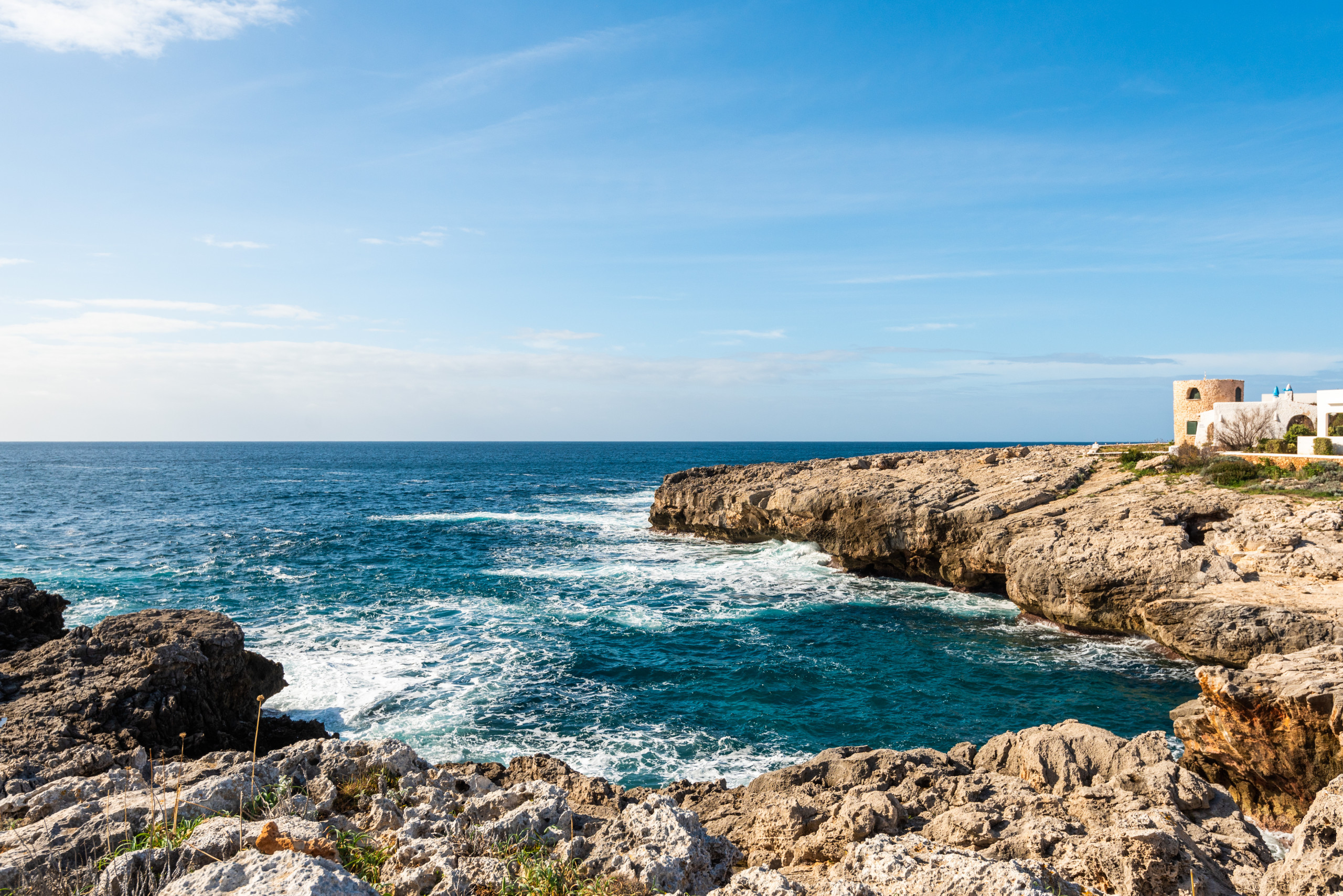 Then there is the virgin beach of Biniparratx, with impressive cliffs and some natural caves, exclusively for pedestrian access, and the beaches Binidalí in the west and Binisafua in the east. Very near to the entrance to Cap den Font there are two restaurants. To find more infrastructure, supermarkets, car rental, ice cream parlors or shops, there is the picturesque “Fishing Village” of Binibeca, about 3 km away, a jewel of architecture, which is at the same time a must for any visitor to Menorca. -