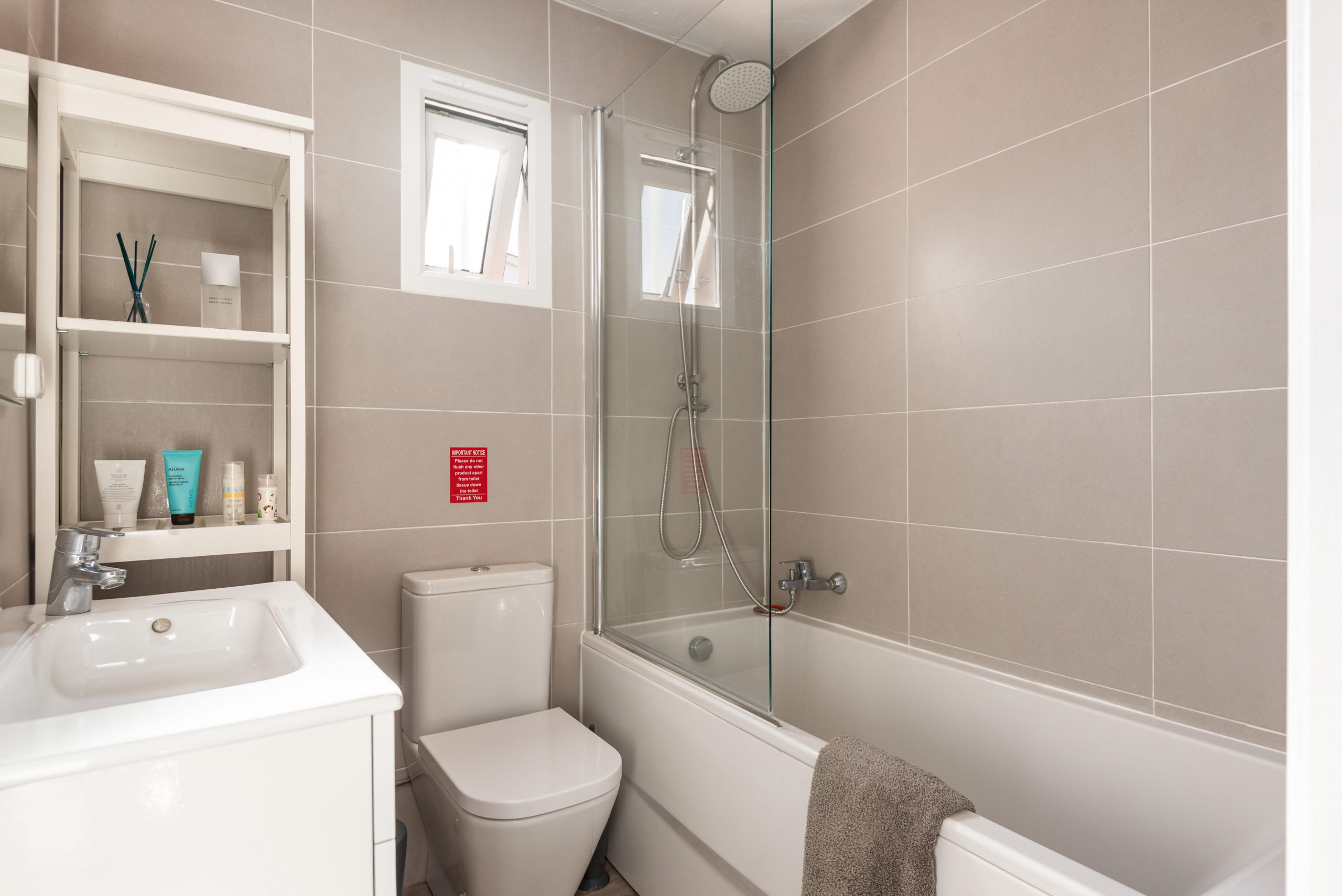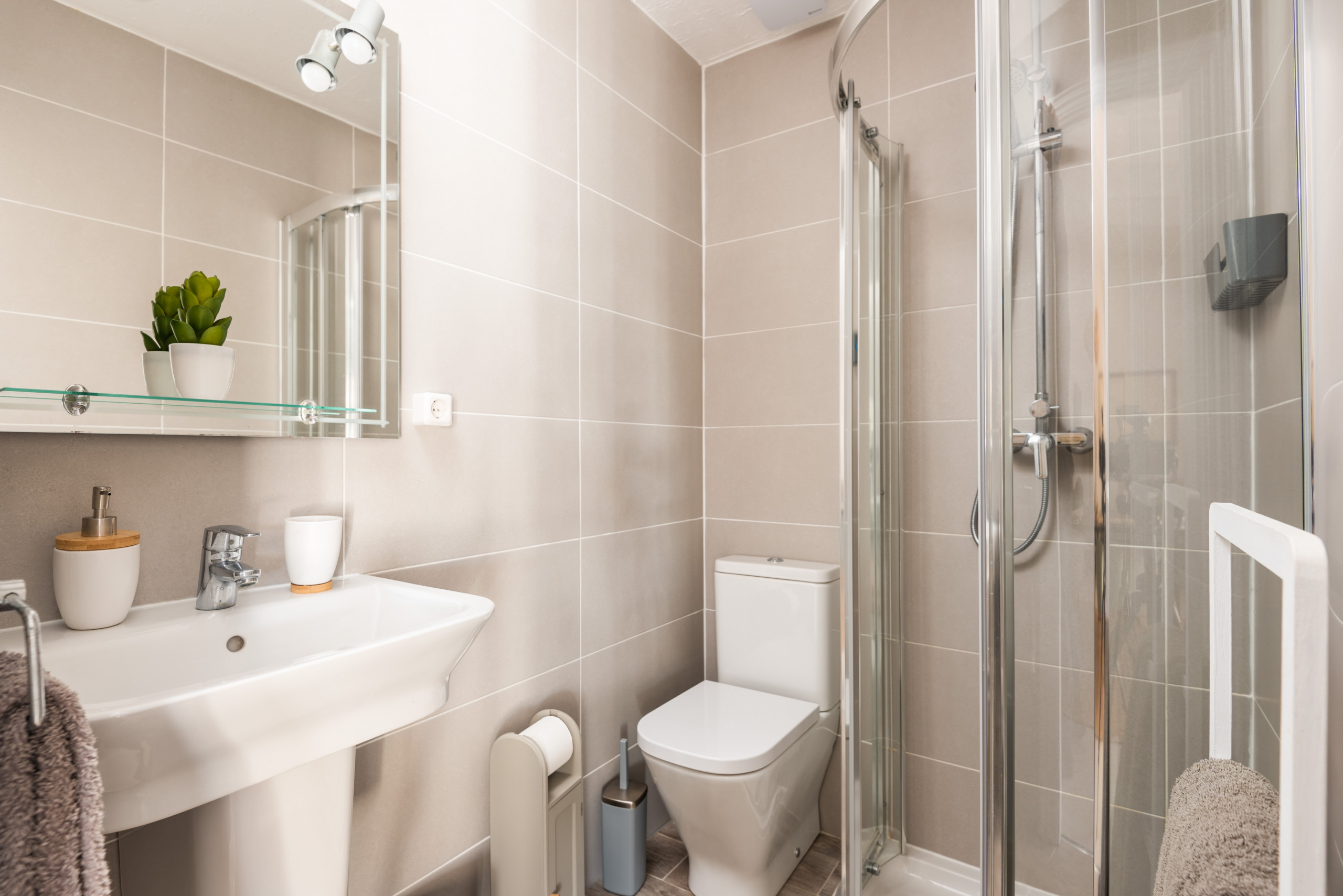 As well the main bedroom, with a double bed and ensuite bathroom, has air conditioning, the other two bedrooms, one with a double bed, the other with two single beds, share the second bathroom and are equipped with fans.